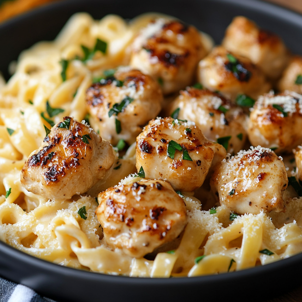 With golden, juicy chicken bites sautéed in garlic butter and served over silky parmesan pasta, this meal is a family favorite that’s fast, simple, and seriously delicious.