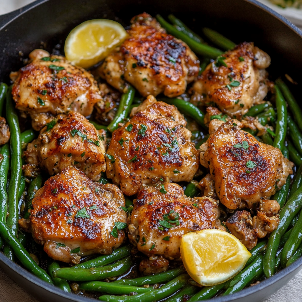 This Lemon Garlic Butter Chicken Thighs and Green Beans Skillet is a simple, flavor-packed meal made in just one pan! With golden-seared chicken thighs, crisp-tender green beans, and a zesty lemon garlic butter sauce, this dish is perfect for weeknight dinners that feel gourmet without the fuss.