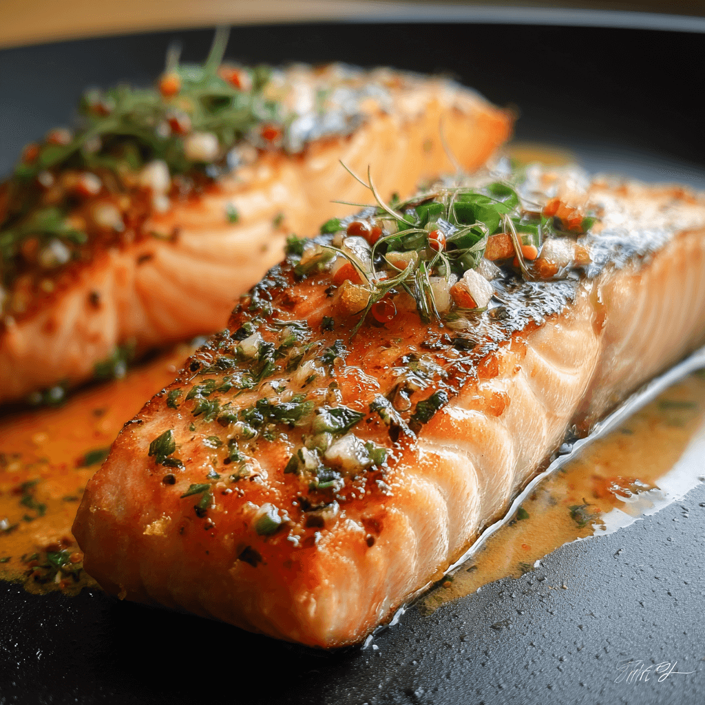 - Texture Play: The crisp sear on the salmon contrasts with the velvety sauce.