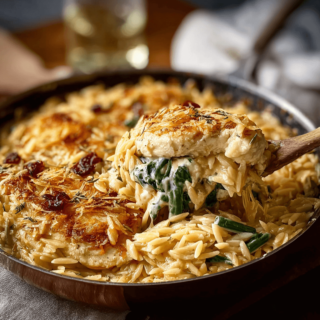 If you want a dish that’s quick, comforting, and packed with flavor, the Monterey Chicken One-Pan Orzo is a perfect choice. It’s a complete meal in one pan, blending tender chicken, creamy cheese, and perfectly cooked pasta with fresh veggies. Whether for a busy weeknight or casual weekend dinner, this recipe will soon become a go-to in your culinary repertoire.