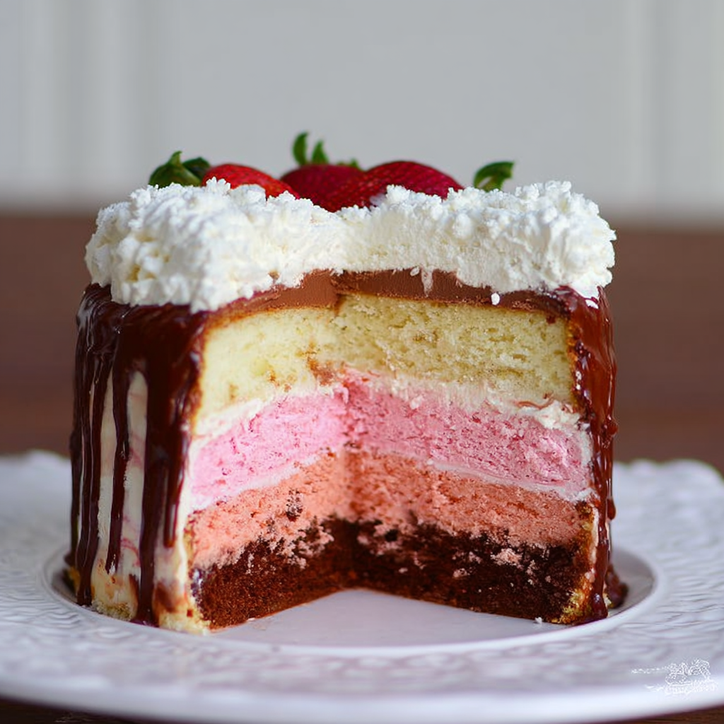 Neapolitan Cake is a delightful fusion of classic ice cream flavors transformed into a stunning, multi-layered cake that’s as pleasing to the eye as it is to the palate. Whether you’re baking for a special occasion or craving a colorful treat, this cake brings a perfect balance of chocolate, vanilla, and strawberry in every bite—making it a timeless dessert worth savoring.