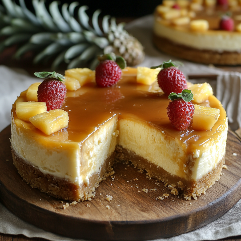 This Pineapple-Caramel Cheesecake is a tropical escape in dessert form—luxuriously creamy, perfectly balanced, and guaranteed to impress. The interplay of tangy pineapple, rich caramel, and velvety cheesecake makes every bite unforgettable.