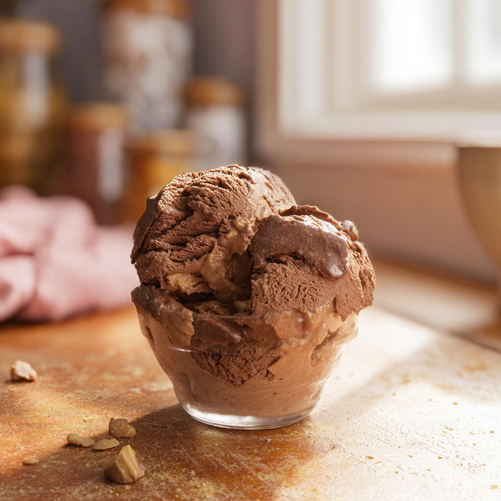 Transfer the ice cream to an airtight container and freeze for at least 4 hours until firm. When ready to serve, scoop generously and enjoy the divine marriage of chocolate and peanut butter in every bite.